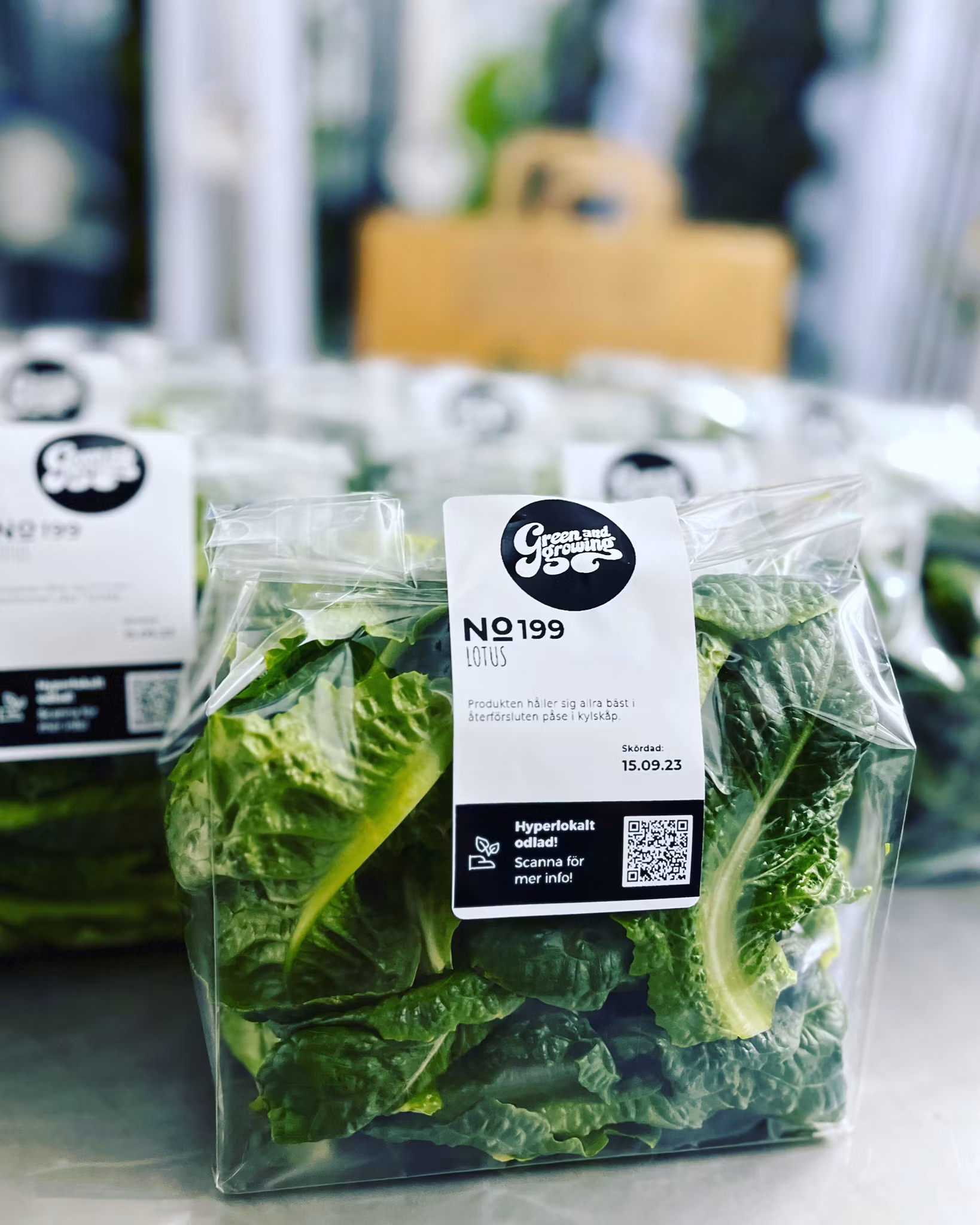 Beroende på tillgång plockar vi ihop ett urval från våra odlingar. Grönkål, rosékål, mangold och svartkål men även Seraptasenap kan dyka upp som ett smakrik gäs
